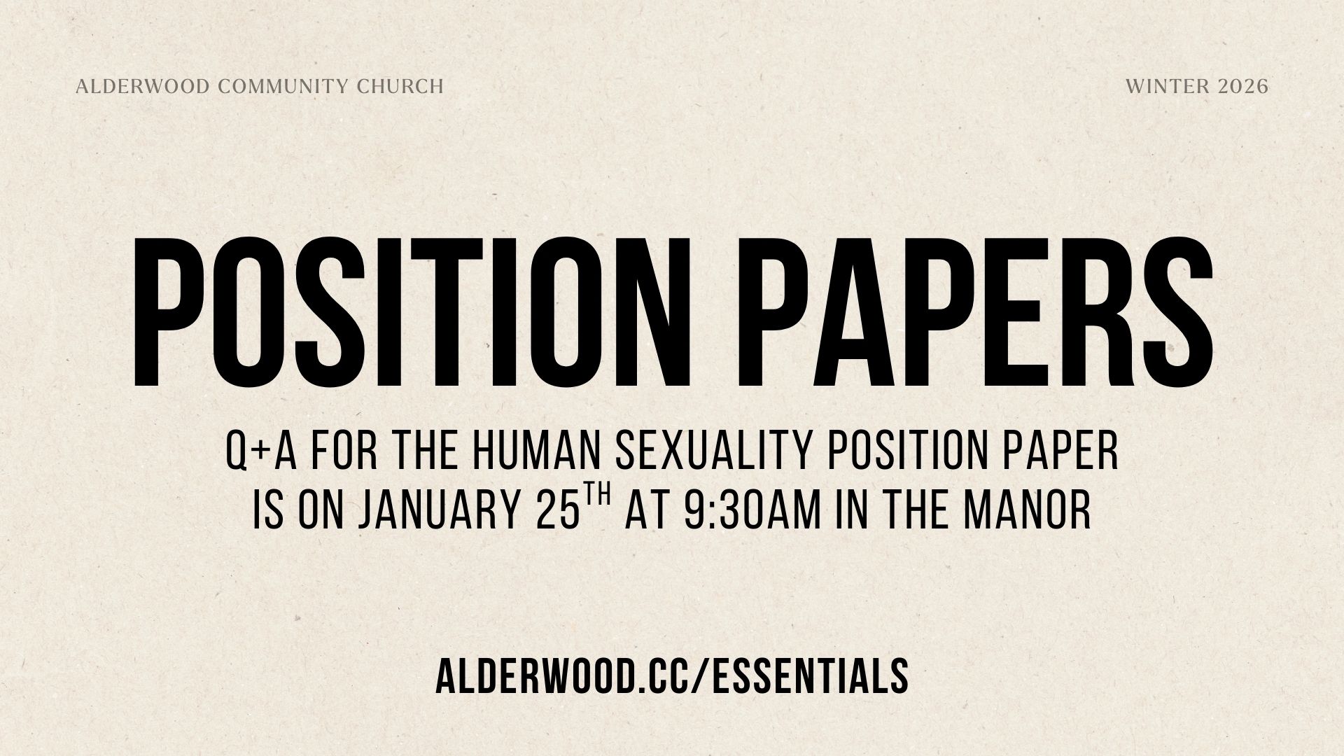 The Elder Board has shared the upcoming implementation of three Position Papers. In the first three months of 2026, Alderwood will be releasing one each month to the congregation.